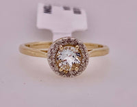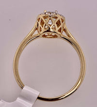 14k yellow gold ring containing .32ct. aquamarine and .07ct.tw. diamonds.