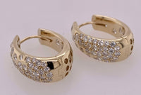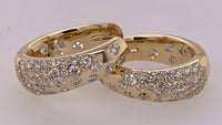 14k yellow gold. Oval shape hoop earrings with a random pattern of diamonds scattered along the front and inside back of the earrings. 1.76ct.tw. diamonds. Snap bar closure. Length: 3/4".