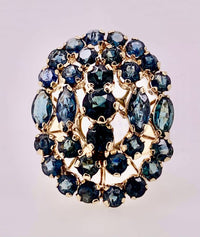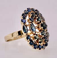 14k yellow gold blue sapphire cluster ring. 4.6 grams.