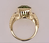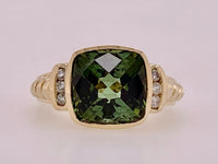 14k Estate 10mm checkerboard cushion cut Tourmaline Ring. .10 total weight diamonds.