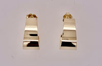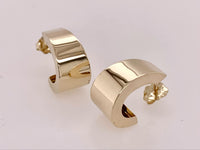 14k half hoop earrings. 3/4" length. 3/8" width. 1.9 grams.