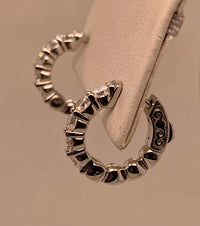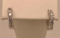14k white gold LAB diamond huggie style hoop earrings. Total LAB diamond weight: 1.00ct. Snap bar locking closure.