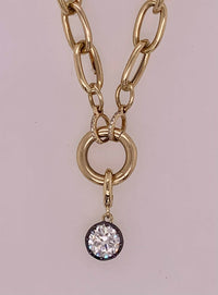 14k yellow gold round lab diamond pendant accented with black enameling. Diamond is VS clarity, FG color. Pendant comes with an enhancer bail. Total lab diamond weight: 1.00ct. 1.0gr. Chain sold separately.