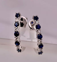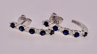 14k white gold. .90ct.tw. sapphires. .16ct.tw. diamonds. Half hoop earrings with post.