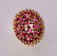 Estate 18K yellow gold Ruby cluster style ring. 6 grams.