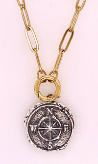 “Guided by the Stars”—a Compass Necklace that whispers of celestial journeys. Crafted in silver, or ancient bronze, its delicate needle points beyond mere direction. It cradles dreams, aligning wanderlust with destiny. The North Star, unwavering, reminds you: you are never lost. Wear it close, and let the constellations chart your course. Back is engraved with "Guided by the Stars".
