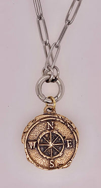 “Guided by the Stars”—a Compass Necklace that whispers of celestial journeys. Crafted in silver, or ancient bronze, its delicate needle points beyond mere direction. It cradles dreams, aligning wanderlust with destiny. The North Star, unwavering, reminds you: you are never lost. Wear it close, and let the constellations chart your course. Back is engraved with "Guided by the Stars".