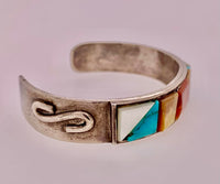 Estate Sterling Silver Inlaid Gemstone Cuff Bracelet.