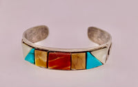Estate Sterling Silver Inlaid Gemstone Cuff Bracelet