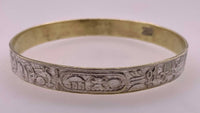 Sterling silver. Estate patterned slip-on bangle. Fits up to an 8" wrist.