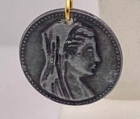 Two-tone finish. Antique reproduction double sided coin. 1 1/2" length.