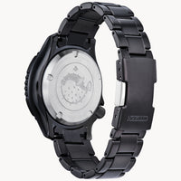 Dive in with the high-performance sport style of a fully luminous dial. The new Promaster Dive Automatic men’s watch by Citizen goes deeper into the history of the original version of this diving watch that was released in 1989 for the new generation of dive watch enthusiasts. A design element that stands out is the distinctive, serrated bezel design that was inspired by a fugu, the Japanese name for pufferfish. Featuring a fully luminous dial and a 3-piece, 44mm case with anti-reflective sapphire crystal and an all-black ion-plated stainless-steel case and bracelet, this iconic men’s dive watch is a reimagining of the original. The black rotating bezel with a black easy-grip aluminum ring surrounds the easy-to-see fully luminous dial, while the case back features an engraving of a fugu or pufferfish. This technically advanced and automatic sport watch comes in an exclusive collector’s dive tank and is ISO compliant with a screw-down crown and water resistant to 200 meters. Caliber 8204.