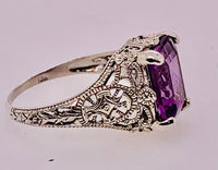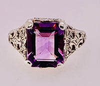 Genuine amethyst sterling silver vintage antique style filigree ring. Size 6.