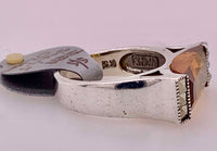 Sterling silver ring containing a citrine-colored rectangle shape cubic zirconia accented with marcasite stones. Size 8.