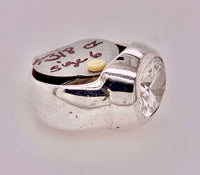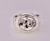 Sterling silver bold design ring containing a large oval shape cubic zirconia. Size 6.