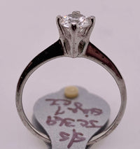 Sterling silver four prong mounting. .50ct. cubic zirconia. Size 7.