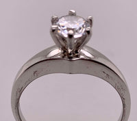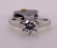 Sterling silver six prong mounting. 1.00ct. cubic zirconia. Size 8.5.