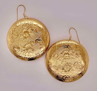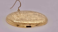 These exquisite earrings were created from vintage pocket watch cases. 1 1/2 inch diameter. Slightly domed design from front of pocket watch. Limited quantity.